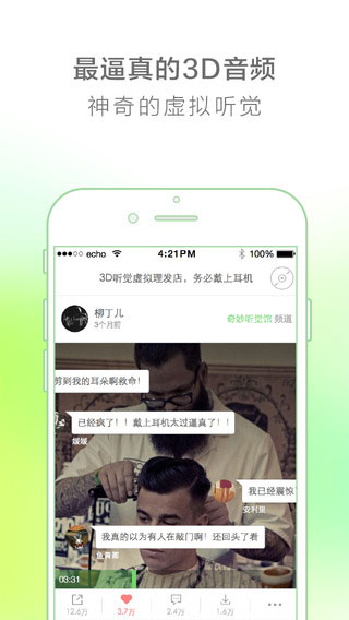 echo回声是一个全新玩法的音乐播放软件,在这里你不仅能听到最好听的音乐,同时还有最搞笑的最神奇的弹幕吐槽,是一个崭新的音乐播放软件,同时软件中你录入一种声音之后会生成多种回音效果,一定会给你带来全新的音乐体验。