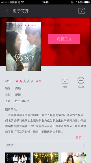 咪咕影院app特点: 1、手机,TV,电脑多屏互动,同步记录。 2、在线优惠购电影票,不用排队,轻松选坐。 3、最新影院大片同步首发,独家影片抢先看,覆盖面全,更新快。 温馨提示:更多的影音播放器,请到xiaohei苹果播放器下载。