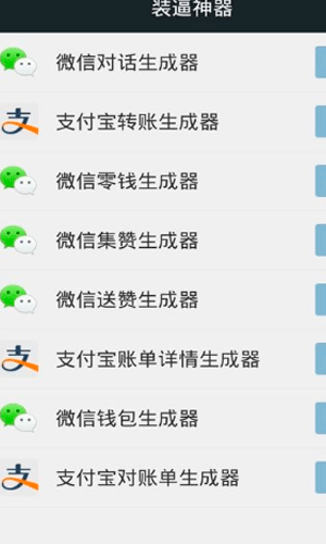 微信红包装B神器是一款为大型社交网络软件——微信的红包功能打造的辅助软件。有了微信红包装B神器,你就可以随意填写红包的来源人和红包金额。赶快下载微信红包装B神器,一起装逼成土豪吧。