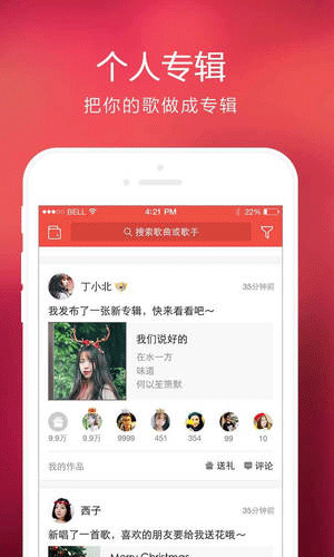 全民k歌app应用特色: 1.K歌欢唱比分争夺天下,兴趣社交让老友更亲密! 2.支持制作十张精品专辑,助你整理归类自己的优质曲目! 3.高品质曲库涵盖最新最热歌曲!超强练唱功能上线,逐段练习,逐字分析,包你学会!