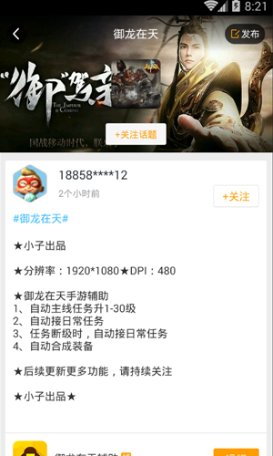 游戏蜂窝御龙在天手游挂机辅助工具是一款非常给力的手机游戏辅助!这款游戏蜂窝御龙在天手游挂机辅助工具专为玩御龙在天的玩家们量身定制的!而且功能强大,上手容易!