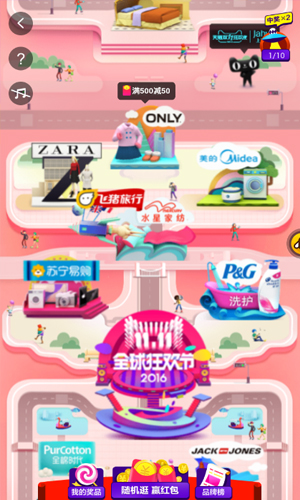 金银岛内5个商家分别有一个小游戏,都是很简单的,胜利则有机会获得双11红包。