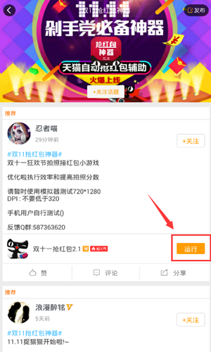 游戏蜂窝《双11天猫狂欢城自动抢红包辅助工具》也是全网唯一免ROOT使用的抢红包工具,支持绝大部分机型,完美支持安卓模拟器(如新浪手游助手)直接运行使用。