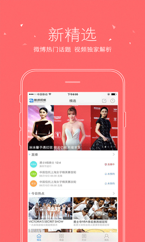 新浪视频直播客户端,一款集电视播放、娱乐直播、热门话题、体育赛事为一体的综合娱乐软件,新浪视频直播客户端为用户提供一切你感兴趣的内容,不论你是体育爱好者、还是追星族,都可在新浪视频直播客户端找到你感兴趣的直播与热门话题。