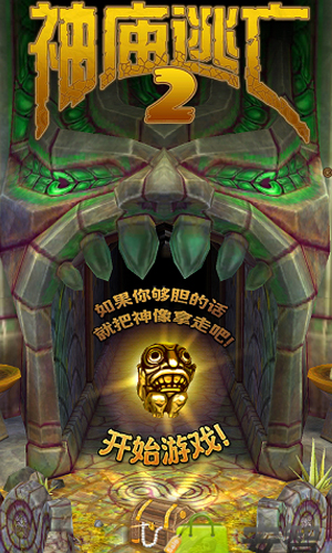 神庙逃亡2(TempleRun2)是神庙逃亡的续集,带来了轰动全球的超凡反响!神庙逃亡拥有超过1亿7千万的下载,它重新定义了游戏这个词的含义。马上下载神庙逃亡2,获得更加令人惊喜的奔跑,跳跃,转弯,滑行体验!危险的悬崖,铁链,矿山和森林都是来自神庙偶像的诅咒!你能逃离多远呢?