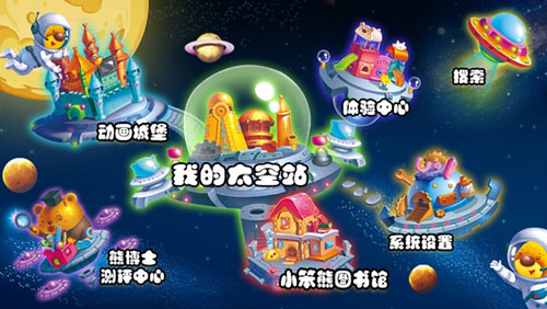 小笨熊云阅读主要板块 1.动画城堡 2.熊博士评测中心 3.小笨熊图书馆 4.我的太空站 5.体验中心 6.搜索 7.系统设置