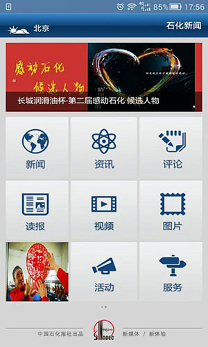 石化新闻客户端板块 1.新闻 2.资讯 3.图片 4.读报 5.活动 6.评论 7.视频 8.服务
