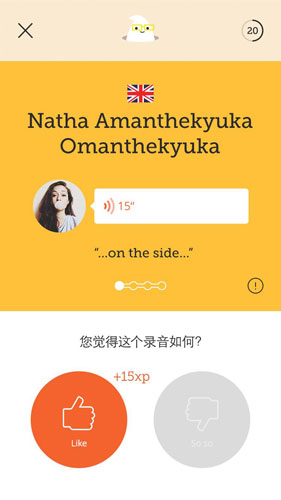一口英语app功能介绍 1.学会真英语口语,提供大量口语词汇训练 2.科学的学习方法,多次训练避免遗忘 3.每天只需五分钟,一个月就能掌握30多词汇 4.可与国外友人进行口语交流,口音更正