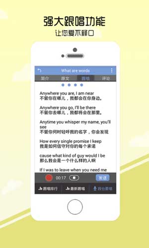 听歌学英语5.1.30904主要特色功能: 1.根据不同的用户,把歌分为了多种类型。 2.这是一款新的学习创新软件,它能对所有的歌进行词汇解析。 3.你可以在线的听,还能把自己最喜欢的下载到本地,不管你走到哪都可以听。 4.可以让你把最喜欢的分享到社交平台,和大伙一同分享。