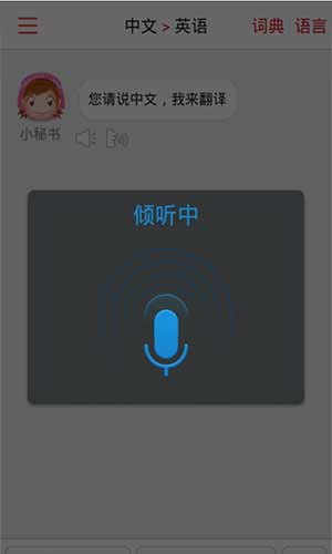 同声翻译超级版无广告是一款很好用的手机翻译软件,只要你对它说话,它就可以把你说的话翻译成英文然后朗读出来,非常的方便,是你学习英语的好助手,快来体验吧!