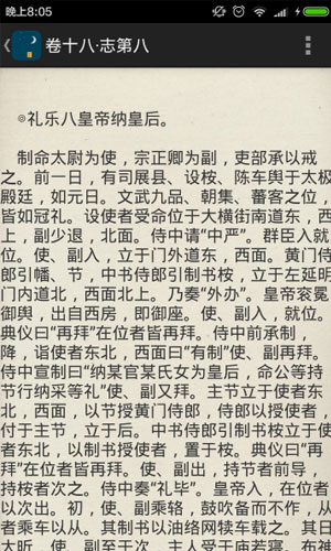 历史助手之二十四史app应用特色: 1.囊括了26部上述史书,力图用简洁的方式准确的反映出史书的原貌。 2.在排版上,尽量按照朝代来排序;每部史书,尽量按照卷来分断。 3.每卷,尽量按照段落来分隔。