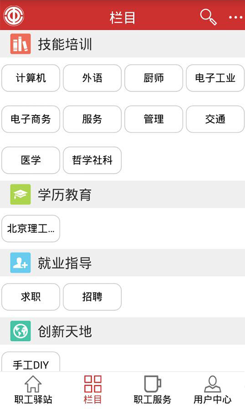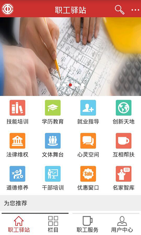 职工驿站app为职工群众提供一系列技能培训、学历教育、心理辅导、素质讲堂、文化活动等相关课程内容,为职工群众提供一系列教育、生活、便民服务,为职工群众搭建工作生活交流互动平台。