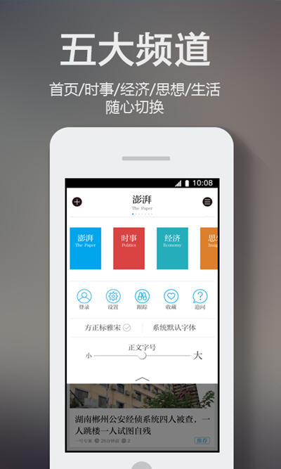 “澎湃新闻”是专注时政与思想的媒体开放平台,生产并聚合中文互联网世界最优质的时政思想类内容。在这里,有最活跃的时政新闻和最冷静的思想分析并重,有数百位专业记者在追逐新闻,有近百名思想大家在奋笔疾书。 澎湃新闻软件特色 1.专注时政:“澎湃新闻”主要围绕时事政治展开,我们立志成为中国第一时政思想网站! 2.开放平台:“澎湃新闻”对所有优秀的内容源开放,只要你有优秀的内容,都可以申请开设栏目! 3.追问新闻:在“澎湃新闻”里,针对每一条新闻,你可以提出自己的疑问,并获得其他用户,乃至一线记者的专业解答! 4.追踪新闻:通过“澎湃新闻”轻松跟踪热点新闻,当该新闻有新进展时,你会成为第一见证人! 5.鼓励分享:“澎湃新闻”希望在信息纷杂的时代,让用户之间享有最充分的交流与探讨,由追问洗出真相,由讨论辩出真理,为用户提供真正有价值的信息与见解。 澎湃新闻2.2.6版本更新内容 1.支持微信登录和短信注册; 2.支持更多第三方分享; 3.修正部分网络无法下载图片问题; 4.支持视频直播; 5.增加报料功能; 6.多项细节优化。