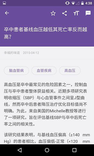 医学时间,一款专为医学研究者打造的手机应用。本着严谨和专业的从医态度,致力于为广大群众提供最优质的医学服务。关于专家讲座、病例讨论、产品资讯等信息,也会第一时间为你提供。 医学时间软件特色 -提供第一手最新资讯,并按顺序排列 -看到有用或感兴趣的内容,一键收藏 -订阅有丁香园推荐的优质临床医学杂志 -用户可使用标签分类管理自己的临床学科 -与好友同行分享体验,感受知识的力量