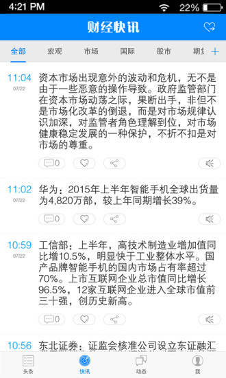 财经头条1.3.6版本更新内容: 增加了全新的专题模式; 增加了新闻幻灯片展示; 增加了语音播报; 增加了资讯分享;