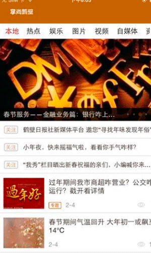 掌尚鹤壁app软件特色: 1.掌尚鹤壁app是最实用最全的新闻资讯平台。 2.在这里,还有很多的资讯频道,掌尚鹤壁app让你畅享生活。 3.掌尚鹤壁app还有专业的当地的各类生活服务动态,为你打造便捷优质的生活方式。