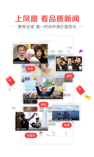 凤凰新闻手机客户端是凤凰新媒体旗下一款资讯类的APP,采用人工智能混合推荐,根据用户兴趣及使用习惯推送的内容,包含由专业内容运营团队编辑推荐内容及凤凰卫视全部节目。