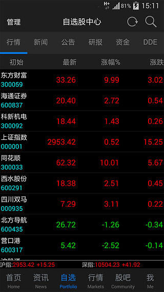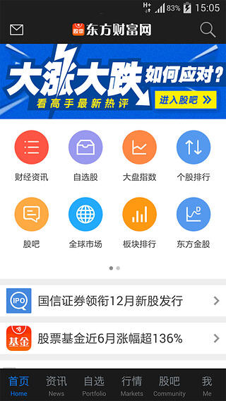 “东方财富通”正式更名为“东方财富网”!东方财富网是中国访问量最大、影响力最大的财经证券门户网站——中国财经第一门户,用户超过1亿,沪深港美全球实时高速行情,7X24小时全天候财经直播! 东方财富网四大独家功能 1.【中国最大的投资者互动社区】股吧,实时获悉政策动向、重大传闻和自选股情报,不会漏掉任何投资机会! 2.【即时提醒】关注股出公告、研究报告、数据,立刻推送到您的手机,让您不错过任何一个捕获牛股的机会,完全免费! 3.【账号同步】东方财富通手机版、东方财富通平板电脑版、东方财富通PC版,东方财富网。四大平台一个账号,轻松管理自选股! 4.【主力资金流】100%真实还原实时主力大单,揭秘主力资金布局! 东方财富网5.1.1版本更新内容 【新增】 1.登录新增微信登陆,绑定您的微信号加入东财的阵营; 2.新增国际汇率、人民币中间价行情,行情种类更广泛; 3.自选股界面新增资金流向和DDE决策列表,查看更快捷; 4.股吧新增热帖功能,助您发现股吧最火的讨论话题; 5.美股新增52周高低和财务数据,沪深指数和板块指数新增涨跌平家数; 6.个股界面更多操作新增“添加到桌面”功能,可将自选股添加至桌面,方便实时查看; 7.K线图界面新增EXPMA、DMA、TRIX等6个全新技术指标。