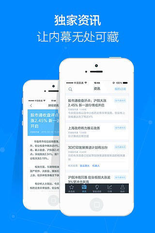 百度股市通是由百度出品的掌上选股软件,专业且独家的全天24小时行业资讯,第一时间掌握幕后消息。智能的个股选择,与强大的搜索功能,用最精准的眼光捕捉每一个信息。 百度股市通软件特色 1.汇聚海量个股数据,第一时间为你完美呈现; 2.全天24小时动态股市资讯,囊括最新内幕消息; 3.全球市场,实时掌握,让投资更安全更可靠。 百度股市通1.1.0版本更新内容 1.【新增】搜索功能; 2.【新增】k线查看功能; 3.【新增】外汇及沪港通; 4.【优化】首页全新设计。
