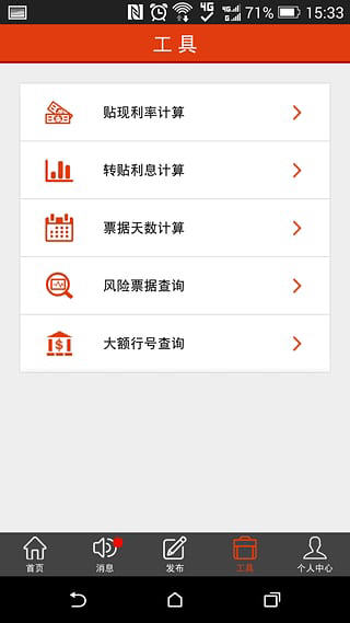 票据宝app软件特色: 1、中介机构报价全部免费,没有次数限制 2、机构发布卖票信息、卖票信息全部免费 3、每天实时采集银行中介的报价,票据价格趋势一目了然 4、为中介机构实时推送票据信息,让中介主动获取持票人联系方式 5、发布卖票信息,根据浏览次数,发布者可以获取40%的返佣 6、注册会员每天1条免费查看卖票信息的权限 7、注册会员即送20元代金券,用于查看卖票信息,获取持票人联系方式 8、票据交易行业首个手机客户端,随时随地查看票据动态,安全贴现 9、贴现利率计算工具、转帖利率计算工具、票据天数计算工具、大额行号查询、风险票据查询工具