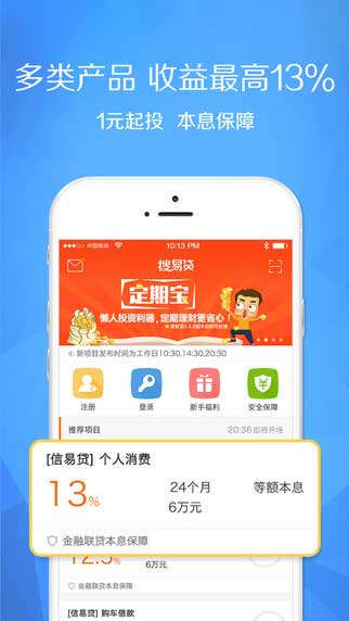 搜易贷理财是一个十分好玩的手机软件,该软件是搜狐旗下一款理财产品,同时该软件中有很多收益很高的理财产品供大家选择购买。喜欢理财的用户千万不要错过这款手机游戏哦!