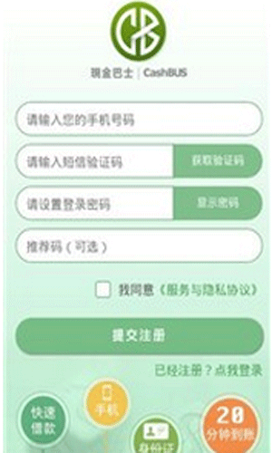 现金巴士app特色: 1.使用手机号码就能直接注册。 2.简单几步,轻松办理信用借款。 3.无复杂程序,资金最快20分钟即可到账。