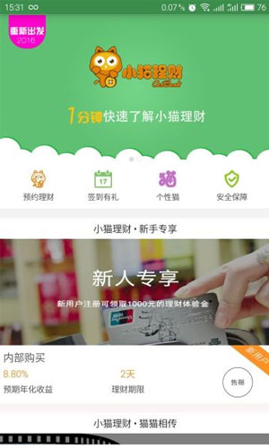 小猫理财app是一款十分有保障的理财软件。小猫理财app现在新用户注册就享1000体验金哦!还有50元的现金券以及0.1加息券等等!小猫理财app是不是很给力!
