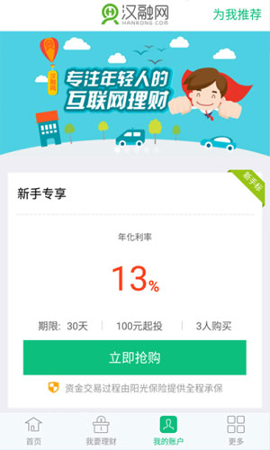 汉融网app——一款专门为了年轻人而打造的互联网理财。来汉融网app,我们始终深信,理财不怕早,攒钱一定要趁年轻。现在加入汉融网app,每天签到还有丰厚的大奖等你来领哦!
