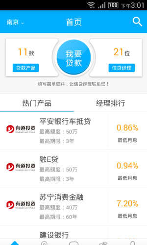 借贷大师app应用特色: 1.随时随地可以发布信贷需求信贷,为客户节省宝贵的时间成本。 2.信贷大师app注册了数万个金融机构客户经理,通过手机定位,为有信贷资金需求的客户提供最方便快捷的服务。 3.信贷大师appB端签约了数十家金融机构的数百款信贷产品,消费者可以直观比较各类产品的价格和条件。