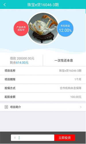 珠宝e贷app怎么样? 1.低投资门槛 珠宝e贷app100元起投注册实名送100现金券首次投资1000再送送68现金券。 2.安全保障 珠宝e贷app支持第三方资金托管,100%本息保障,资金灵活变现。 3.高年化收益 珠宝e贷app11-15%年化收益,1-6个月投资期限,灵活选择。 4.每月新活动 充值一元,珠宝e贷app天天抽奖100%中奖。