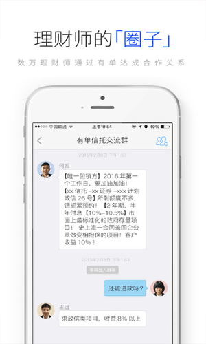 有单理财,一款理财产品推广、认购平台,有单理财致力于通过互联网为金融机构、理财产品渠道及理财顾问提供高效、安全的交易平台,使用有单理财预约流程更简单,过程更流畅、更智能、更注重细节。