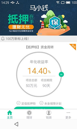 马小钱app为用户带来安卓版马小钱软件下载安装资源。这是一款互联网理财服务客户端应用。马小钱app为您精选高收益理财产品,期限灵活、收益可观,专注小额、短期、抵押标,安全实用。需要马小钱app的用户,快来下载使用吧。