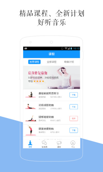 每日瑜伽手机版手机轻松学习瑜伽课程,让你保持纤细的好身材,多种不同天数的课程规划,减肥健身两不误。