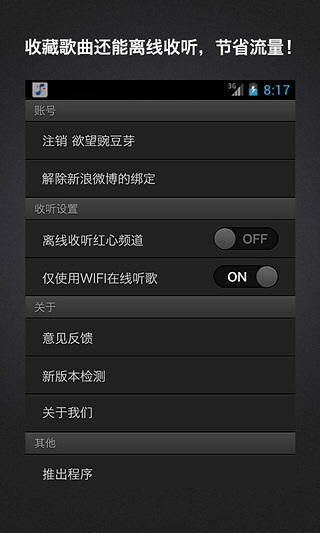 百度随心听,随时随地,听你所听,享你所享!多样化电台频道,随时根据心情,收听不同歌曲。喜爱歌曲一键收藏或下载,方便线下随时收听;收藏歌曲也能不费流量,离线收听哦! 百度随心听主要功能 1.收藏+下载,随时体验离线收听的乐趣; 2.多样化频道,将歌声融入到情感中; 3.歌词同步滚动显示,时刻亮出自己的歌喉。 百度随心听1.1版本更新内容 1.【新增】一键分享机制; 2.【新增】用户反馈入口; 3.【优化】界面布局。