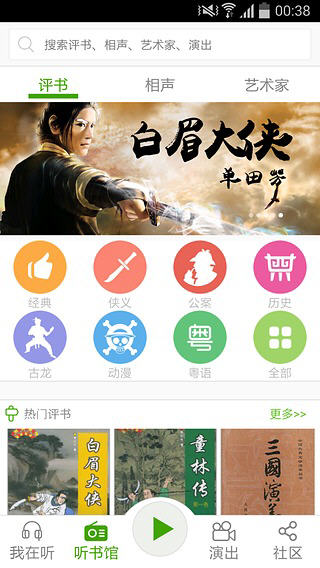 魔王听书是一款提供海量免费有声读物的图书阅读应用。丰富题材,任你挑选。有古龙经典武侠小说,有我们著名历史故事,还有相声大师郭德纲等人的经典作品。 魔王听书软件特色——
