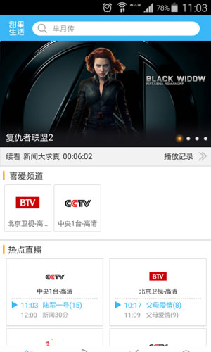 甜果生活app应用特色: 1.是广州珠江数码集团有限公司开发的应用。 2.具备电视直播、时移、回看、点播等功能。 3.与旗下高清互动机顶盒、智能机顶盒业务,形成多屏互动,可以作为遥控器操控机顶盒。