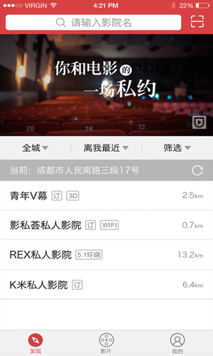 口袋电影app,一款一站式私人影院预订平台,通过口袋电影app就可预定附近影厅,口袋电影app,是备受影迷钟爱的观影应用哦,让你看电影更便捷更有趣,口袋电影app支持会员卡、微信、支付宝等多种支付方式。