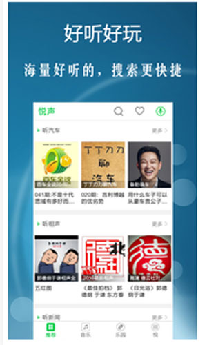 悦声app是一款好玩好听的影音软件,悦声app无论您是在驾车、休闲、还是健身时都可以随时自在享听,悦声app栏目多多,不管是相声小品、汽车、新闻、娱乐、小说、广播剧等都包含在内,功能强大!
