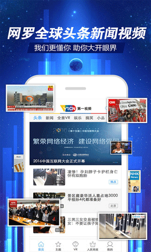 第一视频直播简介: 第一视频,中国首家短视频聚合平台于2016年重磅上线。视频版今日头条,汇集了全球新的、热的新闻、娱乐、搞笑、美食等近30类的短视频内容。 2016年3月,第一视频携手完美幻境、杰图软件等多家合作伙伴率先推出了VR全景直播服务,将全方位对娱乐、经济、商业等大型活动进行VR直播。除了线上,在线下第一视频也将开创性的推出VR室验室,将不断实验探索将应用和用户体验做到极致,同时第一视频还将联合一些线下体验店进一步增加用户对VR体验的触点。