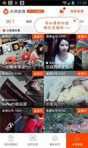 360水滴直播特色: -手工萌妹子教你10分钟捏出小黄人; -金毛大狗排队下泳池秀身段秀泳姿; -足不出门看楼下堵车盛况; -还有各种奇葩新鲜事,只等你来看...