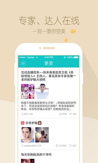 因“更美”而更美! 更美主要功能 1.【注册就送积分】注册就送300积分,1比1折抵现金,兑换礼品和免费项目。 2.【海量免费项目】水光美肤、焕白洗牙、美分换礼,高频率的免费项目体验。 3.【权威专家咨询】美妆专家、护肤达人在线,直接咨询,一对一教你变美。 4.【真实用户分享】海量真实网友蜕变日记分享、美容在线直播。 5.【覆盖领域广泛】从皮肤问题、眼眉脸型…到瘦身丰胸,变美的秘密都在“更美”。 更美3.9.5.1版本更新内容 1.更新loading动画素材,好看得让人爱不释手; 2.“社区”页面新增百科,专家,问答,福利入口; 3.“福利列表”增加地区和医生固定展现位; 4.帖子列表新增筛选器; 5.整体界面优化,处女座看了都说好; 6.攻城狮哥哥们通宵达旦,已优化好各个细节,快向小伙伴们推荐吧; 7.修复部分BUG。