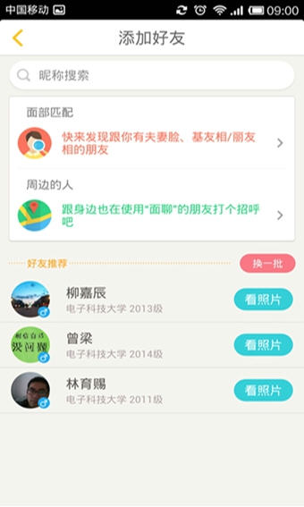 面聊软件特色 1、班级通讯、社团活动、兼职平台等功能,专为校园师生使用打造; 2、学习与社交相结合的移动平台,随时了解校园动态,进行人际交流; 3、多国语言支持,与外国好友亲密交流。