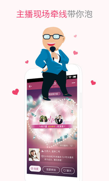在工作日益紧张,生活压力越来越大的今天,没空交友成了很多人的社交难题。寻欢交友平台,众多帅哥美女入驻,每天都会举行交友派对。还有在线的红年主播,在线帮助大家寻找喜欢的TA,一次性的解决用户的交友难题。