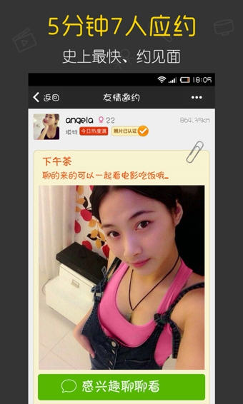 美丽约是一款主打约会聊天的交友应用。在美丽约,您将找到志同道合的好友,发现一生中命中注定的TA。和亲密的朋友同城约会,体验全新交友乐趣。