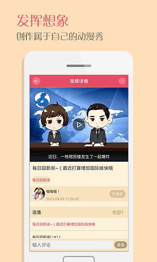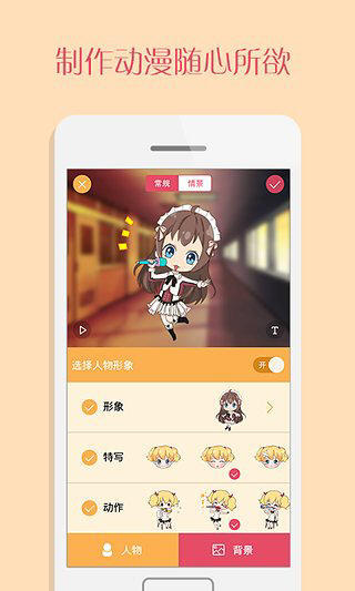 锋绘动漫,人人都是创作家,用漫画演绎人生,感悟生活!在这里,你可以用自制的漫画形象,并配以绘声绘色的动画效果,创作你的动画个人秀。同时,你可将作品分享至广场,与大家一起扎堆讨论。 锋绘动漫软件特色 -DIY个性形象,创造专属于自己的动漫角色 -给它加上表情、动作等,用于表达人物内心 -提供背景、动画等特效,还可配音配乐 -用户之间,轻松互动,分享此刻的精彩