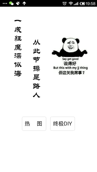《发图狂魔手机版》是一款聊天发图的装逼神器,超屌的发图,各种装逼表情让你在群里的斗图大赛中脱颖而出,而且还支持自定义,提供模版快速制作出符合情景的图片,啥都不用说了,聊天斗图更本停不下来。