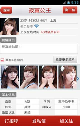 单身交友下载5.2.2应用特色: 1.没有广告植入,无需root权限 2.注册用户信息绝对真实 3.同城邂逅不再是梦,赶快行动起来吧