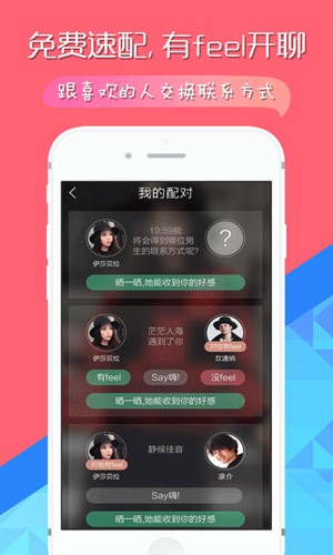 交友配对软件怎么样: 1.红包病毒感染:相互打赏交友,女生讨赏特权,等你来解救寂寞单身贵族。 2.交际圈子梗塞:加入超大靠谱单身人脉圈,等你来华丽变身封面网红女神。 3.在线社交恐惧:彼此点“有feel”后交换联系方式,给你私密的互动空间。