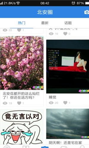 北安家园app为用户带来北安家园软件下载安装资源。这是一款社交聊天应用,为北安地区群众提供的同城交友服务。在北安家园app中你可及时获取当地资讯信息,参与话题讨论,以及定位与附近的人即时聊天等。赶快下载北安家园app,一起轻松交友吧。