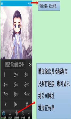 苏易通通讯app怎么样? 1.广告推广,随时切换。 2.智能手机直接拨号与通讯录同步。 3.本机号码不变,对方显示您的号码。 4.苏易通通讯app使用固化网系统,通话质量清晰稳定。 5.苏易通通讯app支持全国电信,移动,联通手机用户都可以使用。 6.所有能上QQ、微信的手机均可绑定苏易通通讯app并拨打电话。 7.苏易通通讯app使用流量非常少,每次无论您拨打多长电话都在1.0KB左右。